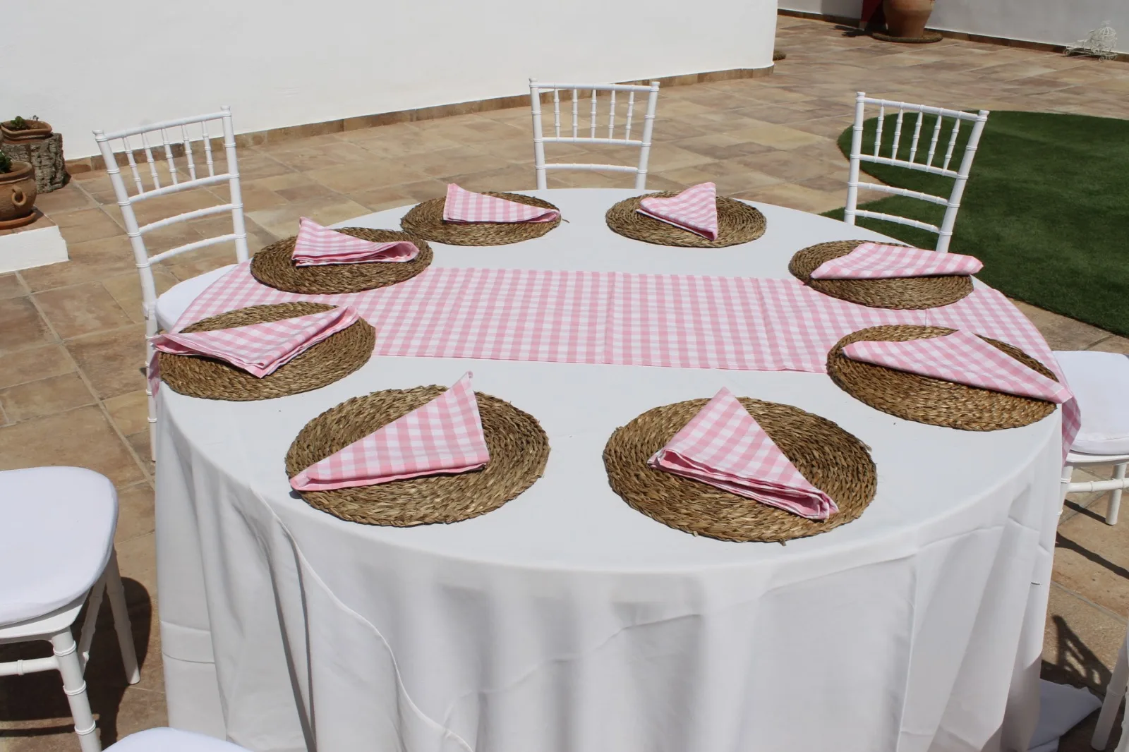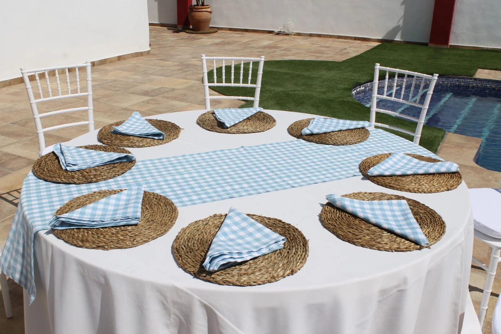 Realza la elegancia de tus celebraciones con nuestra exclusiva mantelería para eventos. Disponemos de una amplia variedad de colores, texturas y estilos para adaptarnos a cualquier temática y ocasión. Cada detalle cuenta, y nuestras telas de alta calidad aportan distinción y armonía a la decoración de tu evento.